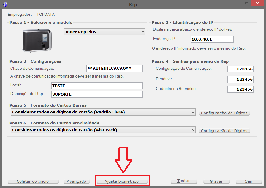 Obs.: O ip do computador não pode ser preenchido com os zeros a esquerda conforme é configurado no Rep. Precisa ser preenchido conforme imagem acima.
