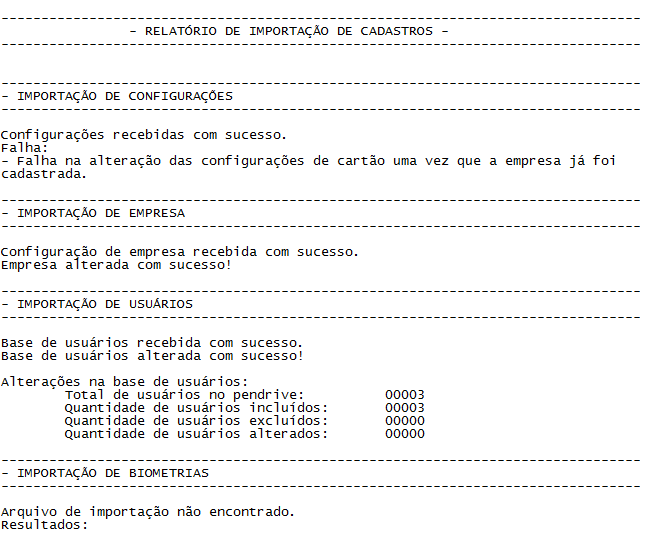 Este arquivo contém um relatório da importação através do pendrive.